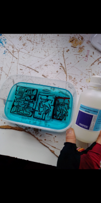 Después de esperar a que se diluya ya tendremos la placa hecha, lo único que quedaría hacer es colocar los componentes y soldarlos