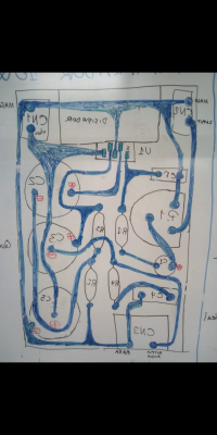 Una vez hecho esto pasaremos a dibujar las pistas en la placa con rotulador negro para posteriormente pasarlo a el ácido.Hay que intentar hacer las pistas lo mas gordas posibles pues de este modo la corriente fluirá más