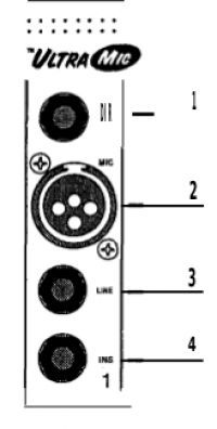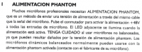 2 ENTRADA DE MICRO La entrada de micro acepta conectores de tipo XLR y está diseñado para acomodar una amplia gama de señales BALANCEADAS o NO BALANCEADAS. Los micrófonos profesionales dinámicos, de condensador o de cinta son mejores porque son de BAJA IMPEDANCIA. Puede usar micrófonos económicos de ALTA IMPEDANCIA, pero el ruido de fondo será mayor. Si activa la ALIMENTACION PHANTOM (en la parte superior derecha del mezclador), el conector ofrece una tensión de alimentación adecuada a los micrófonos profesionales de condensador.