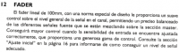 10 FADERS MASTER Los FADERS MASTER ajustan el nivel final de las salidas MIX y SUB, disponiendo de faders separados para cada salida. Normalmente deben estar situados en la marca “0” si las ganancias de entrada han sido correctamente ajustadas, para ofrecer el recorrido máximo en los faders para un control más fino.