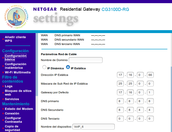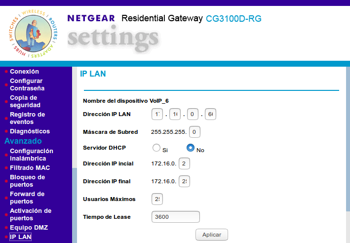 Es muy importante desabilitar la opción DHCP, que sirve para que nos una IP dinámica cada vez que nos conectamos al router, tendremos que ponerlo como Estatica, esto hará que al conectarnos a él tendremos que asignar una dirección manualmente al dispositivo que sea, y así podremos evitar problemas en la red.