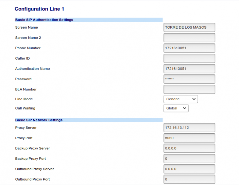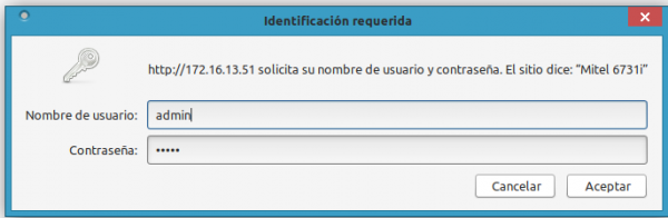 Hemos hecho esto porque con la ip de fabrica del teléfono no deja entrar en el navegador(sospechamos que es por algún router que este dando problemas) ya con la ip que da cuando se resetea en nuestro caso era una 172.16.13.10 la metemos en cualquier navegador (en nuestro caso a sido con firefox) y saldra la siguiente ventana y ya podremos configurar el teléfono