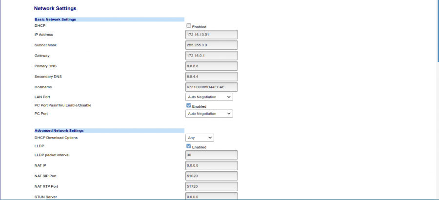 Para poder cambiar la ip a la que deseemos,primero hay que entrar en Admin Menu,despues hay que meterse en la opción Network Settings. Después tendremos que poner la ip que queramos, en nuestro caso hemos escogido las siguientes ip:(172.16.13.51;172.16.13.52;172.16.13.53;172.16.13.54). Después,hay que configurar la máscara y la puerta de enlace.Para finalizar debemos poner como DNS principal 8.8.8.8(Google) y como DNS secundario 8.8.4.4 para que la configuración se quede guardada tendremos que darle a Save Settings y luego reiniciar el teléfono dándole a la llave inglesa hasta restart phone.